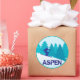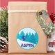 Este adesivo apresenta uma imagem circular em azul e verde de um esquiador de neve silhueta em frente aos pinheiros de uma montanha de neve. A parte inferior tem texto em azul que diz ASPEN. Perfeito para o esquiador que ama as encostas de Aspen, Colorado. *O Clip art usado neste design é protegido por direitos autorais pela Encore Software, Inc., que permite o uso a seus licenciadores. Todos os direitos reservados.