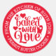Rotule suas doces guloseimas com esses adesivos brancos e vermelhos fofos! A design apresenta "Feita com amor" no centro, rodeada pelo seu texto personalizado. Adoramos com "da cozinha de [seu nome]" com o tipo de biscoito embaixo.