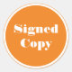 Exemplos assinados com autocolantes de assinatura do Livro com o texto "cópia assinada" cercada por uma borda branca sobre fundo laranja. Tipo de letra e design, moderno e negrito. O adesivo perfeito para anunciar que um livro foi assinado pelo autor. Excelente para livrarias, editores e autores! Eles são rótulos perfeitos para o lançamento do seu livro