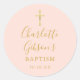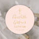Com uma cruz dourada e elegante tipografia de assinatura em um fundo rosa bege. Personalize com os detalhes especiais do batismo ou batizado nesta etiqueta elegante. Criado por Thisisnotme©