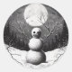 Estes adesivos apresentam um boneco de neve assustador com um pequeno rosto assustador debaixo de uma lua de cheio numa paisagem nevada. Eles são um adesivo divertido para adicionar a um presente de Natal ou cartão de Natal. Estes autocolantes serão apreciados por qualquer pessoa que goste de designs de horror ou gótico.