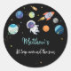 Adesivo Redondo Astronauta Azul do Espaço Exterior Primeiro Aniver