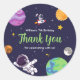 Prepare-se para uma festa de aniversário de crianças no espaço exterior! O Classic Round Sticker mostra um cheio de estrelas no céu, com planetas espalhados pelas bordas. Você também encontrará um foguete e um astronauta, fazer um legal tema de aniversário moderno, tudo feito em um legal modelo de aniversário que você pode fazer seu próprio modelo facilmente.