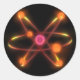 Atomo brilhante com elétrons orbitantes, escolha sua própria cor de fundo.
