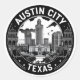 Adesivo Redondo Austin City Texas Skyline Retro Black & White Art