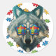 Adesivo Redondo Autismo Sensibilização Lobo Quebra-cabeça Óculos d
