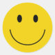 Um adesivo redondo com um rosto sorridente. Você pode escolher a cor de fundo de sua preferência.