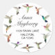 Este adesivo único apresenta algumas das espécies mais comuns de beija-flores que podem ser encontradas em diferentes partes da Califórnia e nos Estados Ocidentais dos EUA em diferentes épocas do ano, como os beija-flores de Anna, Allen, Black-chinned, Costa's Hummingbird, Broad-tailed, Calliope, Rufous e Broad-billed Hummingbird. Todas as imagens de aves são tiradas de aquarelas originais por Christiane Dobbins. O estilo da fonte, o tamanho da fonte e a cor podem ser alterados clicando em "personalizar mais".