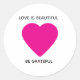 Em um cheio de barulho no mundo acelerado, este adesivo gentilmente nos chama de volta ao que realmente importa. "O amor é lindo" nos lembra que o amor — em todas as suas formas — é a parte mais precioso de ser humano. É encontrado em relacionamentos, bondade, criatividade, e até mesmo autocuidado. "Seja grata" encoraja a atenção e a presença, ajudando-nos a encontrar alegria nas pequenas coisas: um sorriso, um nascer do sol, uma palavra gentil, ou um momento calmo.