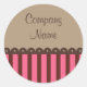 As listras coloridas e as vieiras de chocolate dão a este estilo de retro adesivo comercial. Use estes adesivos para embalagem, como selos de envelope, etc....Use esses adesivos cor-de-rosa e marrom para uma padaria, boutique, compro, negócios etc... Personalize esses adesivos de acordo com suas necessidades, alterando o nome da empresa. Os designs são da arte original.