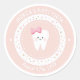 Condecorações personalizadas do primeiro dente. Adesivo cor-de-rosa com dente fofo para bebê, nome editável e data de referência. Visite o compro para ver toda a primeira coleção de dentes.