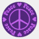 Paz - adesivo roxo escuro com corações roxos e sinal de paz.