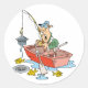 A pesca é uma atividade maravilhosa na qual se deve envolver. Mostre isso com esta design legal de um homem pescando de um barco. Ele parece estar tendo um tempo interessante pescando. Esta design é feita em formato de desenho animado. O homem está no barco com sua haste de pesca ao lado. Há 3 peixes ao redor do barco fora da água. Este homem pescando parece excelente nesses adesivos. Perfeito para si mesmo ou como presente