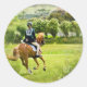 Cavalo e cavaleiro em um show de cavalos em um curso de eventos.