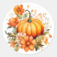 O adesivo é mostrado na redonda com uma adorável impressão floral de abóbora de abóbora. Personalize este item ou comprar como está. Imagem licenciada