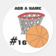 Adesivos personalizáveis de basquete com basquete e rede, e um lugar para adicionar seu nome e número de jogador!