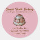 Bonito adesivos de produtos de padaria feitos em forma redonda cor-de-rosa, com gráficos de um bonito bolo personalizado, no meio. O texto castanho é totalmente personalizável para atender às necessidades de sua empresa. Anúncio de excelente e um belo toque final nas suas caixas de padaria.