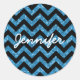 Coletes de Olhos da Glitter Chevron e Tendy. Estes adesivos legal apresentam um padrão de zag zag em forma de guiões em cima de um fundo brilhante azul de arte digital. Adicione texto a este design para lhe dar um toque pessoal.