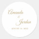 Esse simples adesivo de caligrafia dourada traz um luxo elegante, mas moderno, a um casamento ou cerimônias minimalistas e mais tradicionais ou formais, e a favores. A caligrafia casual permite um sentimento antigo, enquanto o design neutro de classe pode ser combinado com quaisquer aspectos únicos de sua celebração.