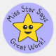 Uma estrela de animação amarela feliz. O texto diz "Miss Star Says Excelente Work!" e pode ser alterado para um nome/mensagem personalizado. Ideal para professores como recompensas para estudantes.