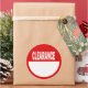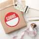 Etiquetas de venda a retalho, vermelhas e brancas, com metade da área gravável.