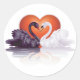 Este design é um cisne preto e branco. Os cisnes estão virados um para o outro e no fundo está um grande coração de amor. Este design de ventoinhas preto e branco tem um aspecto excelente neste adesivo