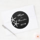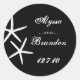 Vinhetas de casamento de praia em preto e branco. Estrelas de lápis brancas sobre fundo preto. O texto do script moderno está em branco. Adicione facilmente os nomes da noiva e noiva e a data do casamento. Escolha entre dois tamanhos e adicione aos envelopes de convite ou use para decorar favores para a recepção. ..................
