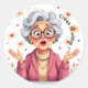 Adesivo Redondo Autocollant femme âgée heureuse recevant des lettr