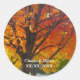 Adicione as informações do seu casamento de outono a este belo cartão. Todo o texto é ajustável para mover, redimensionar e alterar a fonte e a cor. Converta isso para qualquer ocasião. Ao fundo estão as árvores que começam a mudar com o outono antecipado.