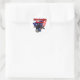 Leve a América para frente, Round Sticker. Nesta design americana patriótica, um jovem pula alto em skates online com a bandeira americana esticada ao fundo. Esta arte original americana diz levar o americano adiante para tempos que incluem os valores de tolerância para os outros, energia alternativo e pensamento inteligente. Um ditado patriótico com arte original faz um presente pensativo. Veja presentes liberais mais progressistas em nossa loja em zazzle.com/VicesAndVerses.