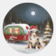 Adesivo Redondo Aventura de Natal do Pastor Australiano Caravan