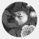 Adesivo Redondo Aves e flores de peônia monocromáticas, cinzas