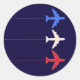Planos azuis, brancos e vermelhos alinhados com rotas pontilhadas