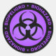 Adesivo Redondo Aviso de Risco Biológico Bilíngue Roxo