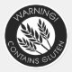 A Advertência a Preto e Branco Contém o Símbolo Glúten Símbolo Celiac Wheat Allergy Stickers. Etiqueta de comidas com uma advertência relativa ao glúten ou ao ingrediente de trigo. Excelente para venda de assares, potes de sorte e à volta da casa para colocar lanches ou produtos cozidos. Design preto e branco com texto indicando AVISO CONTÉM GLUTEN. Designs de Lil Allergy Advocates www.lilallergyadvocates.com