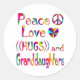Compartilhe o amor pela sua neta com esta design colorida com um sinal de paz, coração, e as palavras Abraços de Amor de Paz e netas.