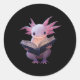Adesivo Redondo Axolotl Bookworm Lendo Livro Engraçado Kawaii Gráf