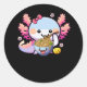 Adesivo Redondo Axolotl Eating Ramen Noodle Anime Kawaii Japonês