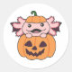 Adesivo Redondo Axolotl Halloween Pumpkin Bat Costume