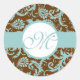 Adesivo Redondo Azul-aqua nos Casamentos tema damasco castanhos