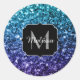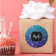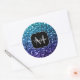 Adesivo Redondo Azul Aqua Ombre faux glitter farelos Monograma