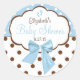 Adesivo Redondo Azul com Chá de fraldas Bolinhas castanho
