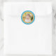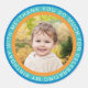 Adesivo Redondo Azul, Crianças Laranja Foto Aniversário Obrigado