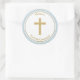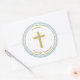 Adesivo Redondo Azul de comunhão com Bolinhas Douradas