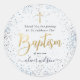 Adesivo Redondo Azul E Dourado Batismo De Aquarela Obrigado