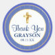 A tinta azul do marinho vendida enquadra o adesivo externo, enquanto as faixas azuis enquadram o adesivo interno. Eles são separados por borda dourada. O interior da vinheta é branco e contém uma pequena cruz dourada. Obrigado, o nome e a data do garoto estão abaixo do nome do garoto. Um autocolante perfeito para muitos eventos religiosos e cerimônias como batizar, batismo, dedicação, primeira comunhão ou confirmação. Apropriado para rapazes e homens de todas as idades. Use-o para selar favoritos para festas e envelopes. Fácil de personalizar.