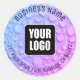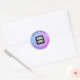 Adesivo Redondo Azul e púrpura gotas de água, texto sujo e logotip