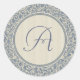 Adesivo Redondo Azul Elegante e Damasco bege com Monograma