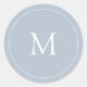 Este adesivo de casamento simples e moderno apresenta um fundo azul tendencioso, leve e empoeirado com o seu texto original em branco elegante, e um quadro circular branco correspondente. É feito para coordenar perfeitamente com nossa coleção de casamento "sutil rosa d'água".