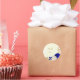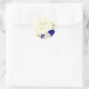 Flores rosas, azuis e brancas, com ouro, deixam obrigado de casamento botânico.